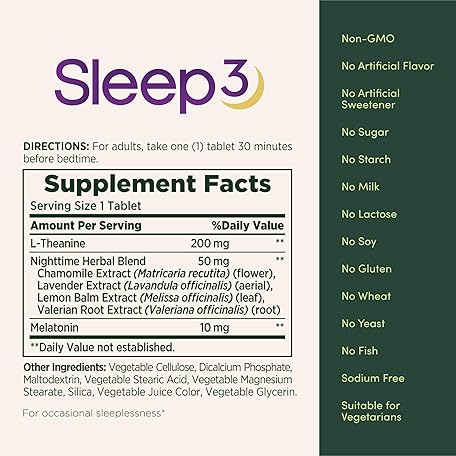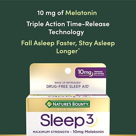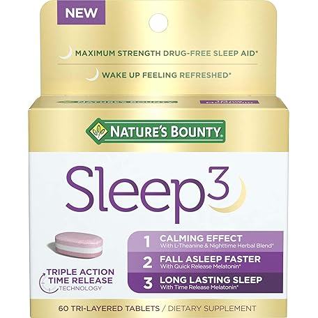 Thông tin sản phẩm Nature’s Bounty Sleep3 Melatonin 10mg, Maximum Strength 100% Drug Free Sleep Aid, Dietary Supplement, L-Theanine & Nighttime Herbal Blend Time Release Technology, 60 Tri-Layered Tablets