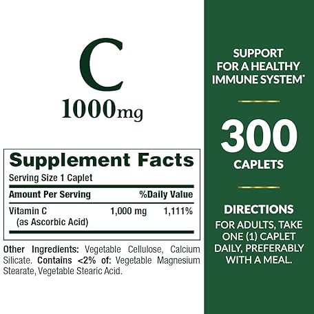 Thông tin sản phẩm Nature's Bounty Vitamin C 1000mg, Supports Immune and Antioxidant Health, Vitamin C Supplement, 1 Per Day, 300 Vegetarian Caplets