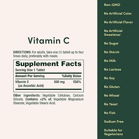 Thông tin sản phẩm Nature's Bounty Vitamin C 500mg, Supports a Healthy Immune System, Daily Vitamin Supplement, 250 Vegetarian Tablets