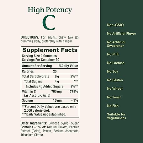 Thông tin sản phẩm Nature’s Bounty Vitamin C Gummies 700mg, High Potency Vitamin C Chewable Gummies for Adults, Immune Support Supplement, Dietary Supplement, Orange Flavor, 60 Ct