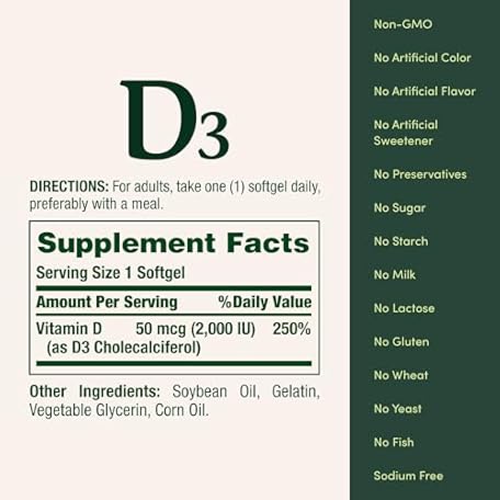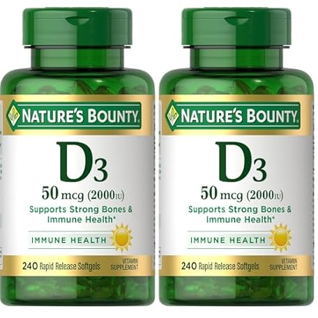 Thông tin sản phẩm Nature's Bounty Vitamin D3 2000 IU, Immune and Bone Support, Vitamin Supplement, 1 Per Day, 240 Rapid Release Softgels (Pack of 2)