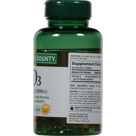 Thương hiệu Nature's Bounty là cái tên nổi tiếng được rất nhiều khách hàng trên thế giới chọn lựa. Với kiểu dáng đẹp mắt, sang trọng, sản phẩm Nature's Bounty Vitamin D3 2000 IU | Supports Immune Health, Calcium Absorption & Bone Strength | Essential for Healthy Bones | Non-GMO, No-Gluten | 350 Softgels, 1 Serving Per Day for Daily Health là sự lựa chọn hoàn hảo nếu bạn đang tìm mua một món cho riêng mình.