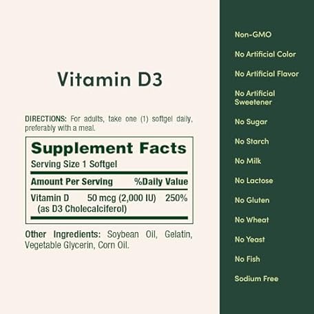 Thông tin sản phẩm Nature's Bounty Vitamin D3 2000 IU | Supports Immune Health, Calcium Absorption & Bone Strength | Essential for Healthy Bones | Non-GMO, No-Gluten | 350 Softgels, 1 Serving Per Day for Daily Health