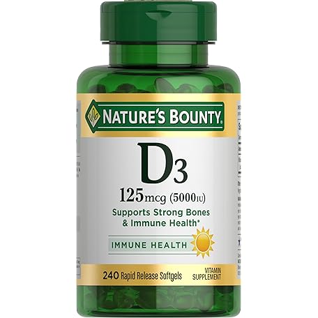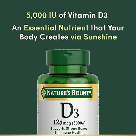 Sản phẩm Nature's Bounty Vitamin D3 5000 IU Softgels, Rapid Release, Immune Support, Vitamin D Supplements, 240 Ct đang được bán với giá ưu đãi là $11.2488 tại nước Mỹ.