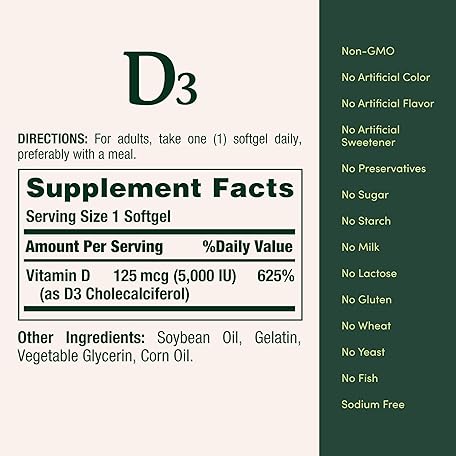 Thông tin sản phẩm Nature's Bounty Vitamin D3 5000 IU Softgels, Rapid Release, Immune Support, Vitamin D Supplements, 240 Ct