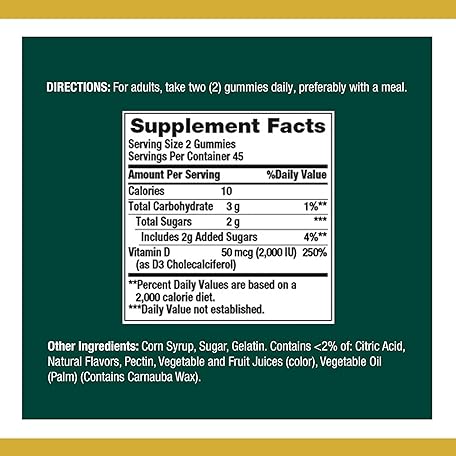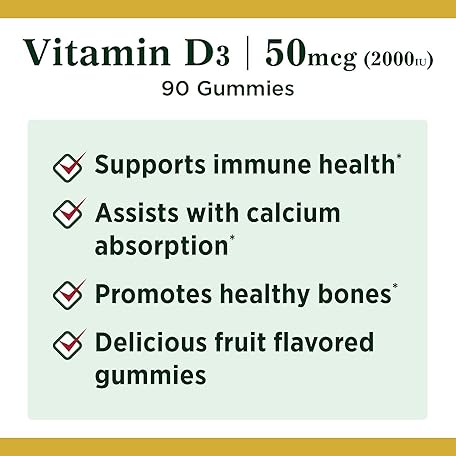 Thông tin sản phẩm Nature's Bounty Vitamin D3 Gummies, Vitamin Supplement, Supports Immune Health, 50mcg, 2000IU, Mixed Fruit Flavor, 90 Gummies