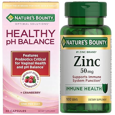 Nature’s Bounty Zinc 50mg Immune Support Supplement, 100 Caplets + Healthy pH Balance Vaginal Probiotic, 30 Ct – Supports Immune, Feminine & Urinary Tract Health, Wellness Bundle