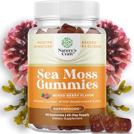 Natures Craft Irish Sea Moss Gummies for Women Men & Kids - Immune Support Supplement with Irish Sea Moss, Bladderwrack & Burdock Root - Detox Gummies for Body Cleanse - 90 Chewable Gums