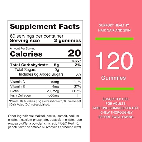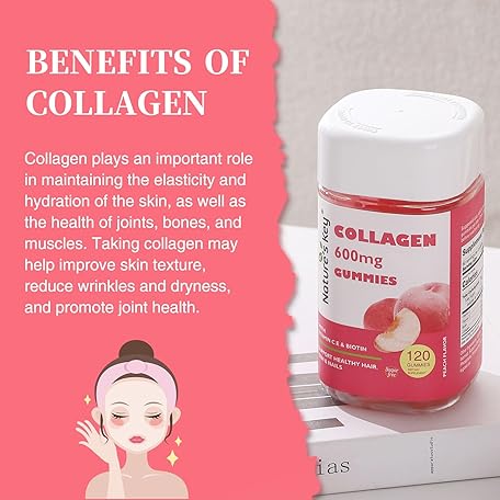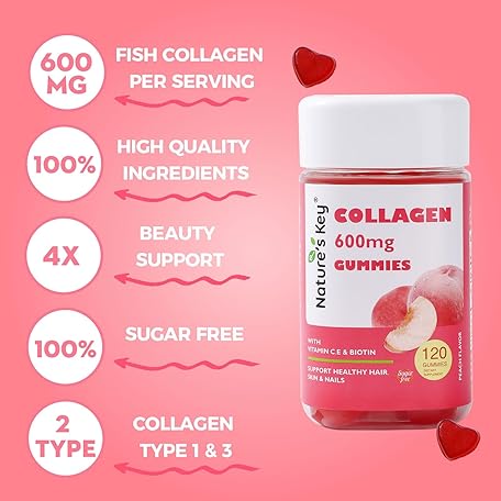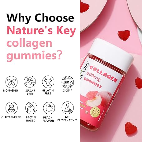 Thông tin sản phẩm Nature's Key Collagen Gummies with Vitamins C, E & Biotin, 600mg Collagen Per Serving, Reduces Wrinkles & Promotes Skin Elasticity, Sugar Free Peach Flavor (120 Gummies, Pack of 1)