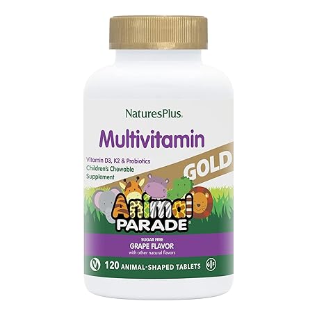 Sản phẩm Natures Plus Animal Parade Gold Children's Multivitamin, Grape Flavor - 120 Chewable Animal Shaped Tablets - Vegan, Gluten Free - 60 Servings đang được bán với giá ưu đãi là $31.4465 tại nước Mỹ.