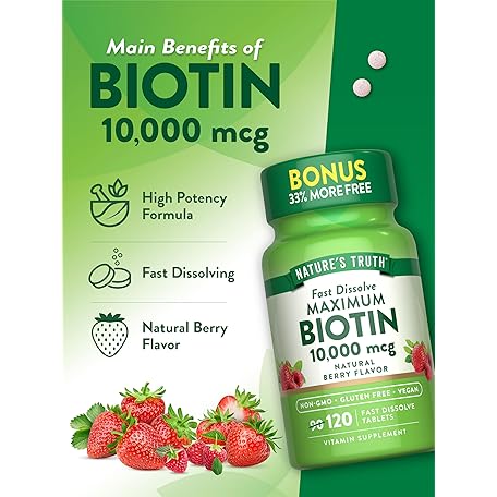 Sản phẩm Nature's Truth Biotin 10000mcg | 120 Fast Dissolve Tablets | Maximum Strength | Natural Berry Flavor | Vegan, Non-GMO & Gluten Free Supplement đang được bán với giá ưu đãi là $15.7614 tại nước Mỹ.