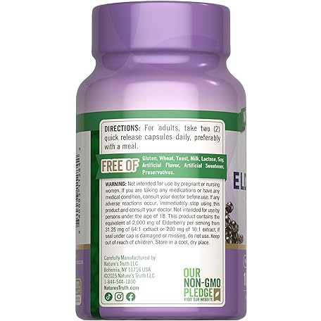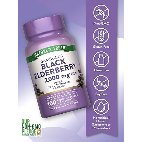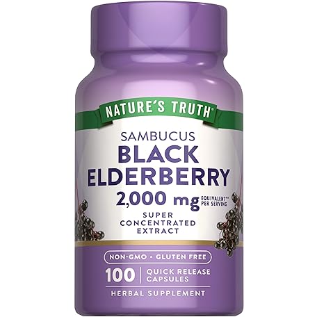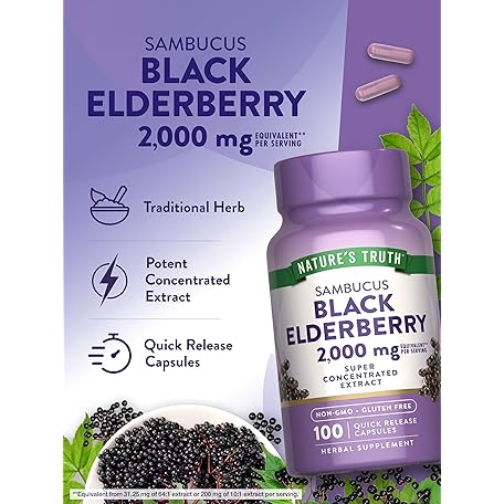 Sản phẩm Nature's Truth Black Elderberry Capsules | 100 Count | Super Concentrated Sambucus Extract | Non-GMO and Gluten Free Supplement đang được bán với giá ưu đãi là $10.8673 tại nước Mỹ.