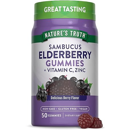 Sản phẩm Nature's Truth Black Elderberry Gummies | 50 Vegan Gummies | with Vitamin C and Zinc | Berry Flavor | Vegan, Non-GMO, and Gluten Free Supplement đang được bán với giá ưu đãi là $11.2052 tại nước Mỹ.