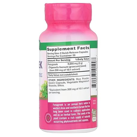 Nature's Truth Fenugreek 2000 mg Supplements, 100 Count (Pack of 1)