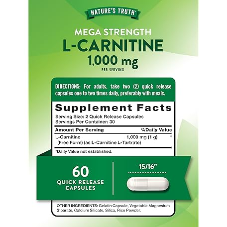 Sản phẩm Nature's Truth L-Carnitine 1000mg | 60 Capsules | Mega Strength | Free Form | Non-GMO & Gluten Free Supplement đang được bán với giá ưu đãi là $15.2273 tại nước Mỹ.