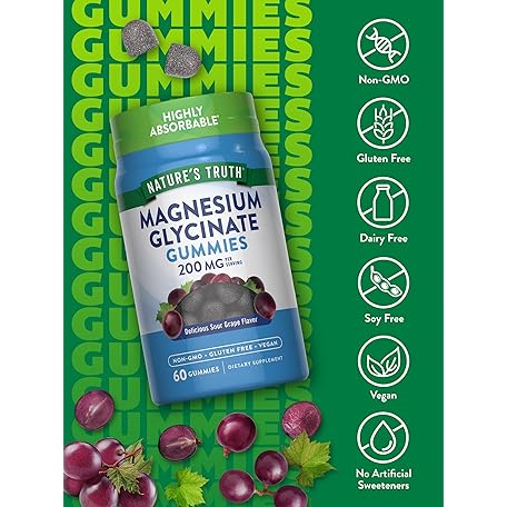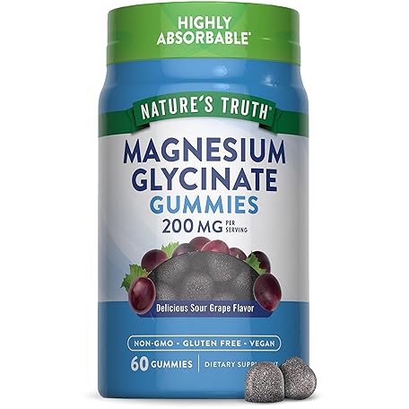 Sản phẩm Nature's Truth Magnesium Glycinate Gummies for Adults | 200mg | 60 Count | Vegan, Non-GMO & Gluten Free Supplement | Grape Flavor đang được bán với giá ưu đãi là $14.7041 tại nước Mỹ.
