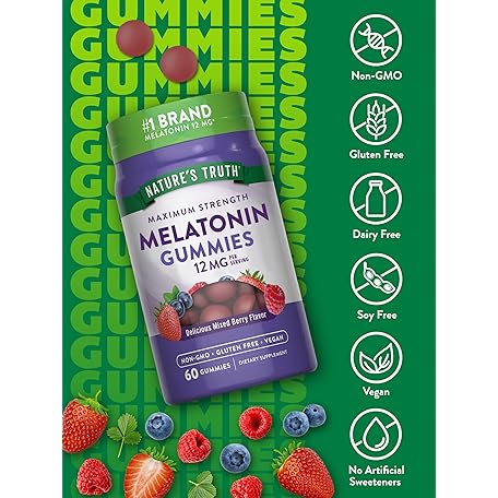 Sản phẩm Nature's Truth Melatonin Gummies | 12mg | Mixed Berry Flavor | Vegan, Non-GMO & Gluten Free Supplement đang được bán với giá ưu đãi là $13.9411 tại nước Mỹ.