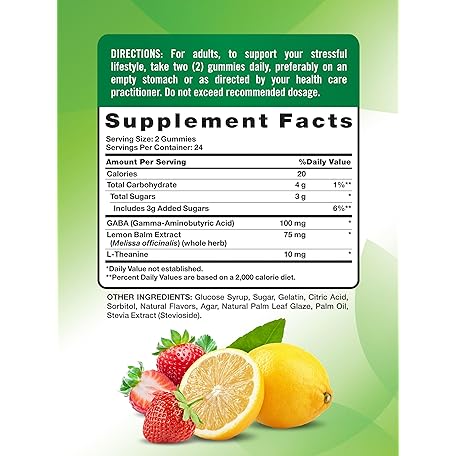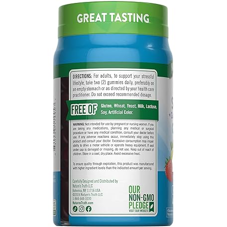 Thông tin sản phẩm Nature's Truth Stress Relief Gummies for Adults | with Gaba, L Theanine, and Lemon Balm | Lemon Strawberry Flavor | Non-GMO & Gluten Free Supplement