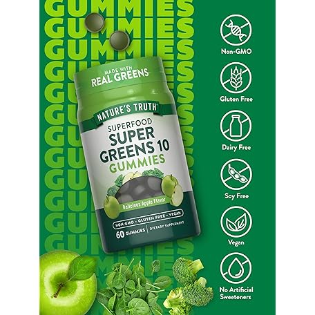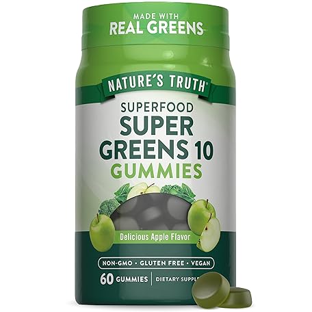 Sản phẩm Nature's Truth Super Greens Gummies | 60 Count | Vegan, Non-GMO & Gluten Free | Made with Real Greens | Apple Flavor đang được bán với giá ưu đãi là $15.2382 tại nước Mỹ.