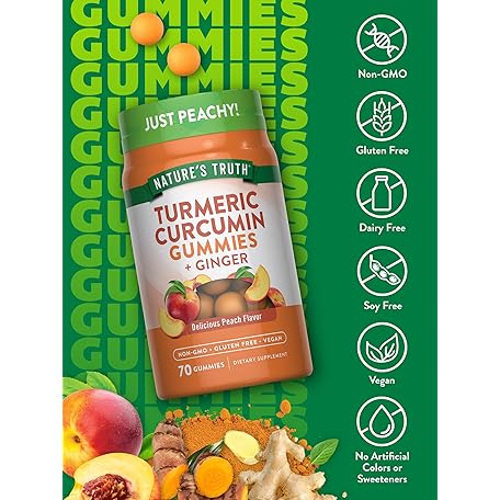 Thông tin sản phẩm Nature's Truth Turmeric and Ginger Gummies | 70 Count | Peach Flavor | Vegan, Non-GMO, & Gluten Free Supplement