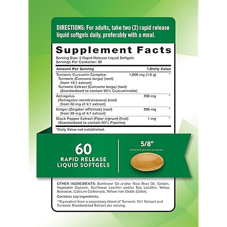 Thông tin sản phẩm Nature's Truth Turmeric Curcumin Complex | 1600mg | 60 Softgels | with Ginger, Astragalus, & Black Pepper Extract | Non-GMO & Gluten Free Supplement