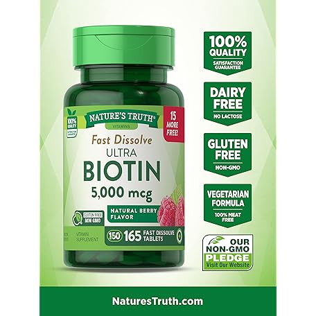 Nature's Truth Ultra Biotin 5000mcg | 165 Fast Dissolve Tablets | Hair Skin and Nails Supplement | Natural Berry Flavor | Vegetarian, Non-GMO, Gluten Free