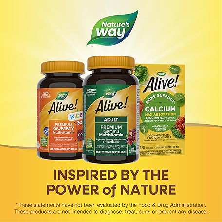 Thông tin sản phẩm Nature's Way Alive! Adult Premium Multivitamin Gummy, Full B-Vitamin Complex, Supports Energy Metabolism & Heart Health*, 90 Gummies (Packaging May Vary)