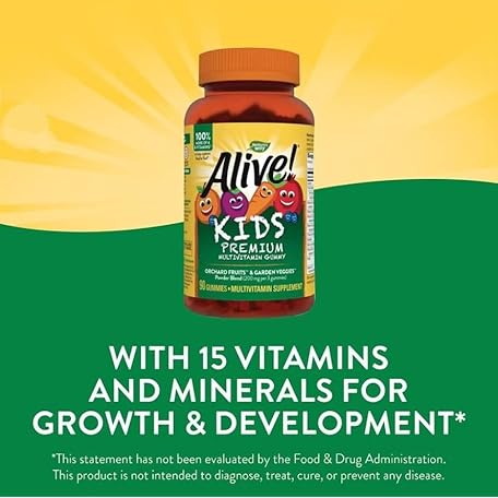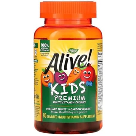 Thông tin sản phẩm Nature's Way Alive! Children's Premium Gummy Multivitamin, Fruit and Veggie Blend (150mg per Serving), Gluten Free, Made with Pectin, 90 Gummies, Pack of 2
