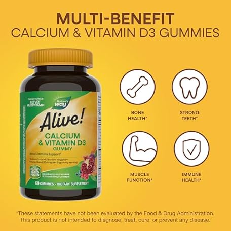 Thông tin sản phẩm Nature's Way Alive! Premium Calcium + D3 Gummies, Supports Healthy Bones & Muscles*, Strawberry and Raspberry Lemonade Flavored, 60 Gummies
