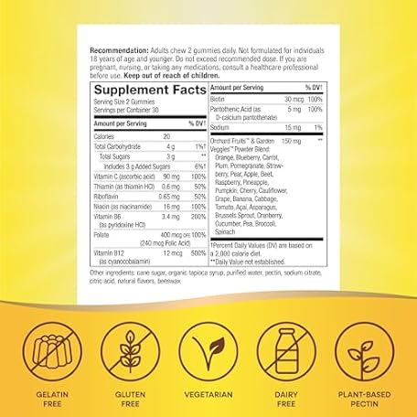 Thông tin sản phẩm Nature's Way Alive! Vitamin B Complex Gummies, Cellular Energy Support*, 8 B-Vitamins, Vegetarian, Mango Flavored, 60 Count (Packaging May Vary)