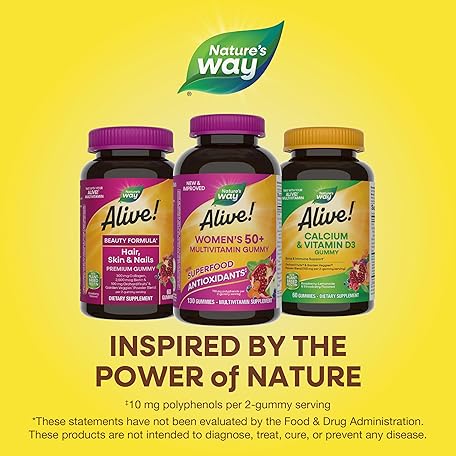 Thông tin sản phẩm Nature's Way Alive! Women's 50+ Daily Gummy Multivitamins, Women's Supplements, Supports Healthy Heart, Brain & Bones,* B-Vitamins, Mixed Berry Flavored, 130 Gummies (Packaging May Vary)