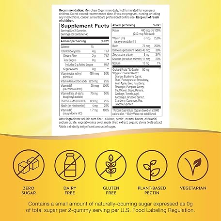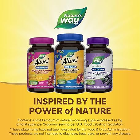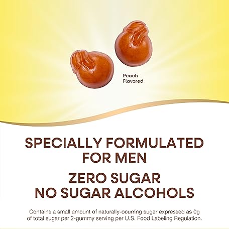 Nature's Way Alive! Zero Sugar Men's Gummy Multivitamins, Energy Metabolism*, Muscle Function*, B-Vitamins, No Sugar Alcohols, Plant-Based Sweeteners, Peach Flavored, 80 Gummies