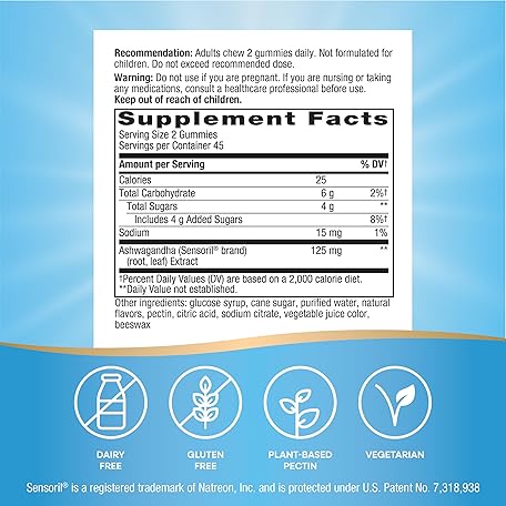 Thông tin sản phẩm Nature's Way Ashwagandha Gummies, Reduce Stress with Adaptogenic Herb*, 125 mg Per 2-gummy Serving, Berry Flavored, 90 Gummies (Packaging May Vary)