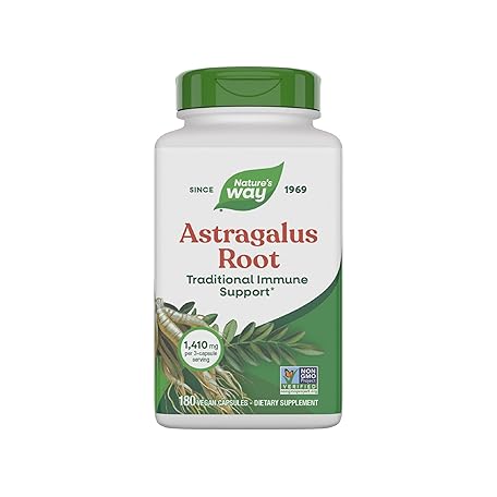 Thông tin sản phẩm Nature's Way Astragalus Root, Traditional Immune Support*, 1,410 mg per 3-Capsule Serving, Non-GMO Project Verified, Vegan 180 Capsules (Packaging May Vary)
