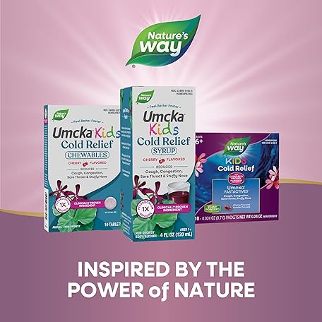 Thông tin sản phẩm Nature's Way Cold Relief Syrup for Kids 1+, Umcka, Shortens Duration & Reduces Severity, Multi-Symptom Cold Relief, Homeopathic, Phenylephrine Free, Cherry Flavored, 4 Fl Oz (Packaging May Vary)