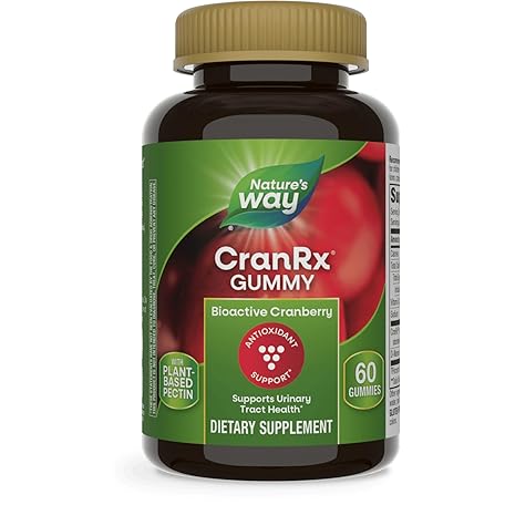 Thông tin sản phẩm Nature's Way CranRx Cranberry Gummies, Urinary Tract Health Support*, 100% Whole Cranberry Fruit Concentrate with D-Mannose, Vitamin C, 60 Gummies (Packaging May Vary)
