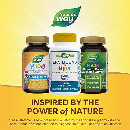 Thông tin sản phẩm Nature's Way EFA Blend for Kids with vitamin E, Supports Eye and Brain Function*, 120 Softgels