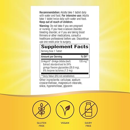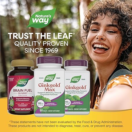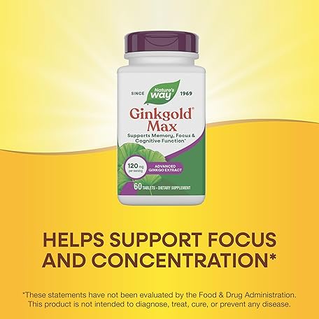 Thông tin sản phẩm Nature's Way Ginkgold Max Advanced Ginkgo Extract, Supports Concentration, Cognitive Function*, Memory and Focus*, Gluten-Free, Vegan, 60 Vegan Tablets (Packaging May Vary)
