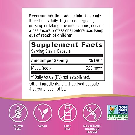 Thông tin sản phẩm Nature's Way Maca Root, Traditional Libido Support*, 525 mg per Serving, Non-GMO Project Verified, 100 Vegan Capsules (Packaging May Vary)