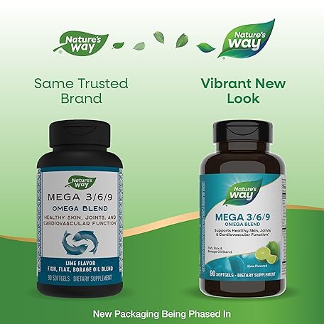 Thông tin sản phẩm Nature’s Way Mega 3/6/9 Omega Blend, Supports Healthy Skin, Joints, Cardiovascular Function*, Fish, Flax, Borage Oil, 90 Lime Flavored Softgels (Packaging May Vary)