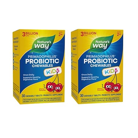 Sản phẩm Nature's Way Primadophilus Probiotic Chewables for Kids, Supports Healthy Digestive Flora*, for Kids Ages 2+, 3 Billion CFU, 30 Cherry Flavored Chewables (Packaging May Vary) - 2 Pack đang được bán với giá ưu đãi là $22.8682 tại nước Mỹ.