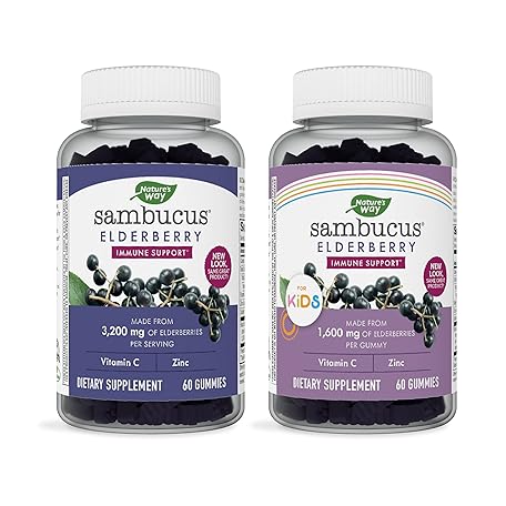 Thông tin sản phẩm Nature’s Way Sambucus Elderberry Gummies and Sambucus Elderberry Gummies for Kids, Immune Support Gummies, Delicious Berry Flavor, 60 Gummies Per Bottle