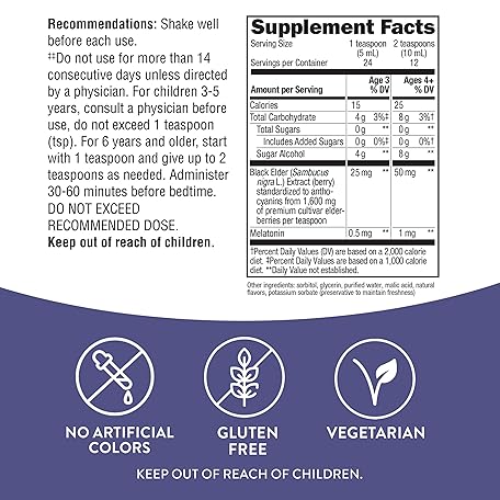 Thông tin sản phẩm Nature's Way Sambucus Elderberry Nighttime Syrup for Kids with Melatonin, Immune Support*, 4 Fl Oz