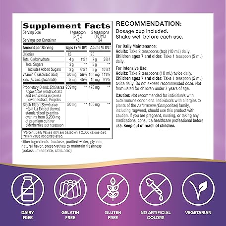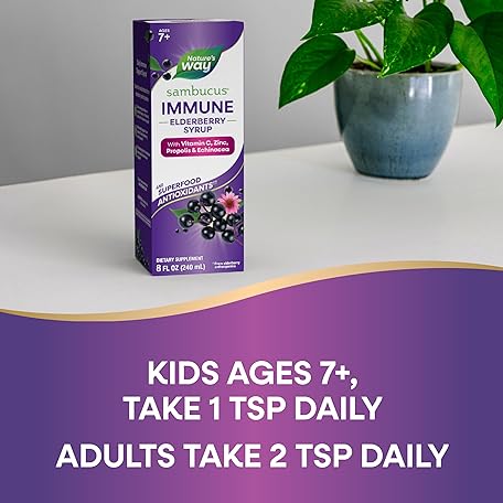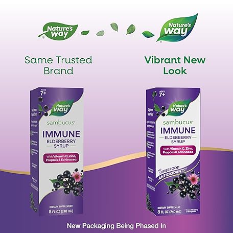Thông tin sản phẩm Nature's Way Sambucus Immune Elderberry Syrup, Elderberry extract, Vitamin C and Zinc with Propolis & Echinacea for Immune Support*, with Superfood Antioxidants(1), 8 Fl Oz (Packaging May Vary)