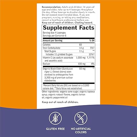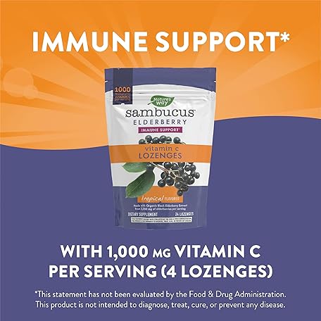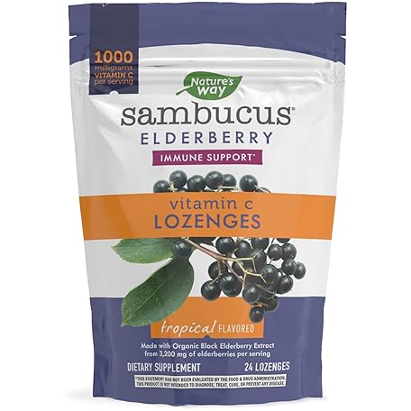 Thông tin sản phẩm Nature’s Way Sambucus Immune Lozenges, High Potency Vitamin C, Elderberry, 24 Tropical Flavored Lozenges (Packaging May Vary)