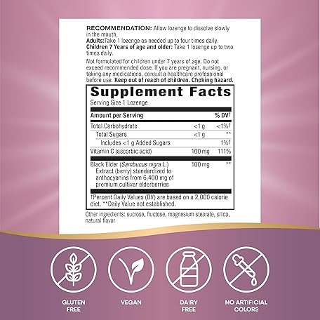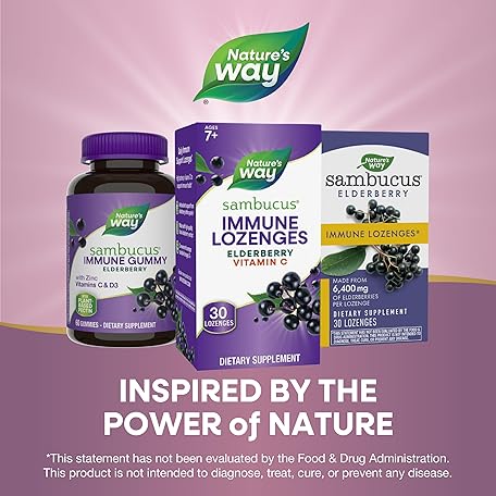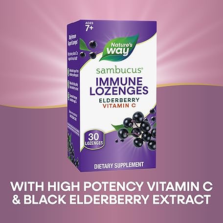 Thông tin sản phẩm Nature's Way Sambucus Immune Lozenges, with Vitamin C, Black Elderberry Extract, Immune Support*, 30 Lozenges (Packaging May Vary)