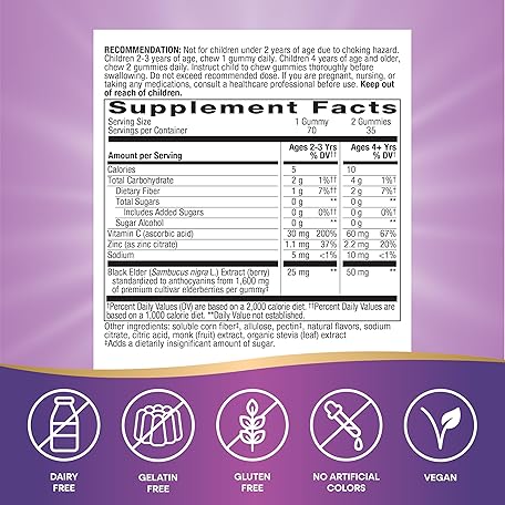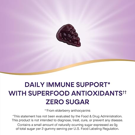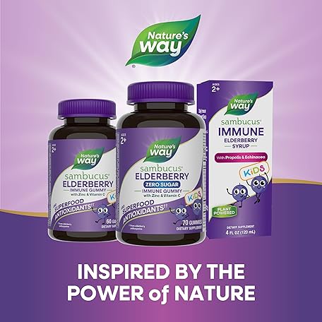 Nature's Way Sambucus Zero Sugar Elderberry Immune Gummies for Kids, Immune Support*, with Vitamin C, Zinc, Black Elderberry Extract, 70 Count (Packaging May Vary)