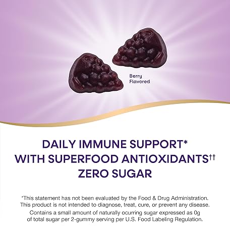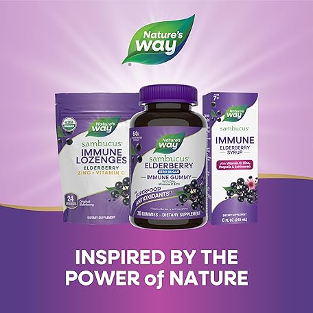 Thông tin sản phẩm Nature's Way Sambucus Zero Sugar Immune Gummies, Daily Immune Support*, Black Elderberry Extract, Vitamin C, Vitamin D3, Zinc, Sugar Free, Sugar Alcohol Free, Plant-Based Sweeteners, 70 Gummies