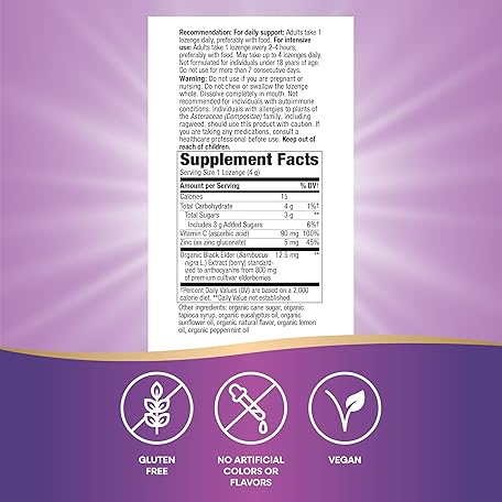 Thông tin sản phẩm Nature’s Way Sambucus Zinc Lozenges with Elderberry and Vitamin C, Peppermint Flavored, 24 Lozenges