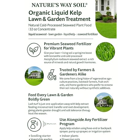 Nature’s Way Soil® Liquid Kelp Fertilizer – Organic Seaweed Plant Food for Lawn, Garden, Flowers & Vegetables | Cold-Processed | Natural Growth Booster & Soil Revitalizer (32 Ounce)